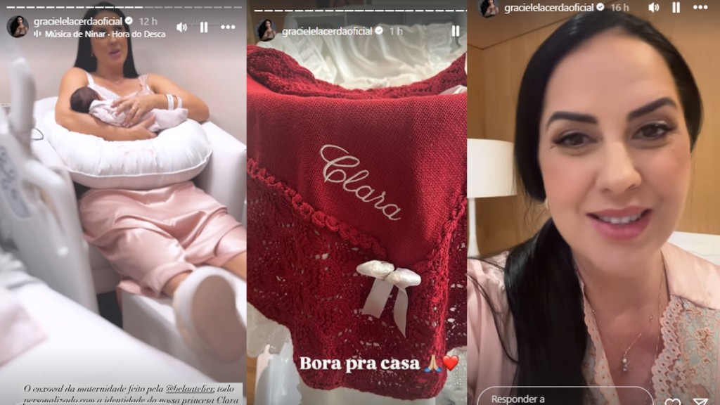 Graciele Lacerda tem alta da maternidade e deixa hospital com a filha: ‘Pra casa’