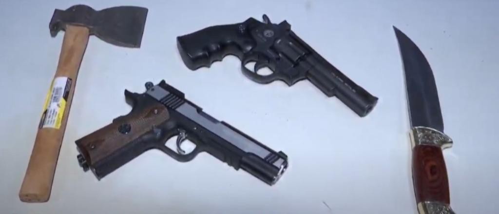 Dois homens são presos em flagrante com simulacros de armas de fogo, faca e machadinha