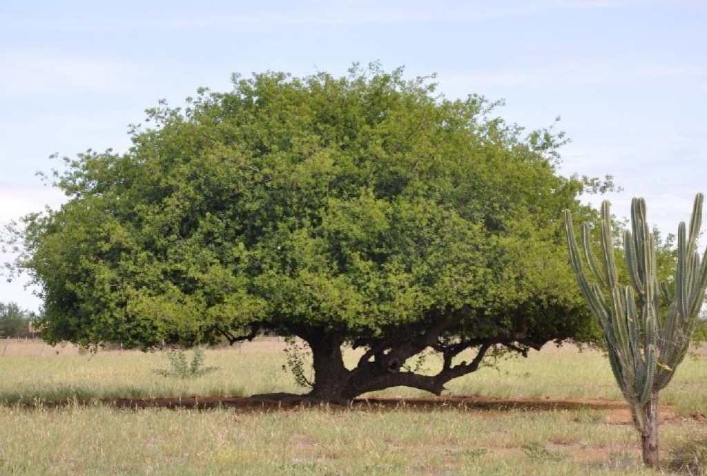 O umbuzeiro, capaz de armazenar água em suas raízes para resistir a longas secas, é um símbolo cultural do semiárido e sustento tradicional de agricultores familiares.