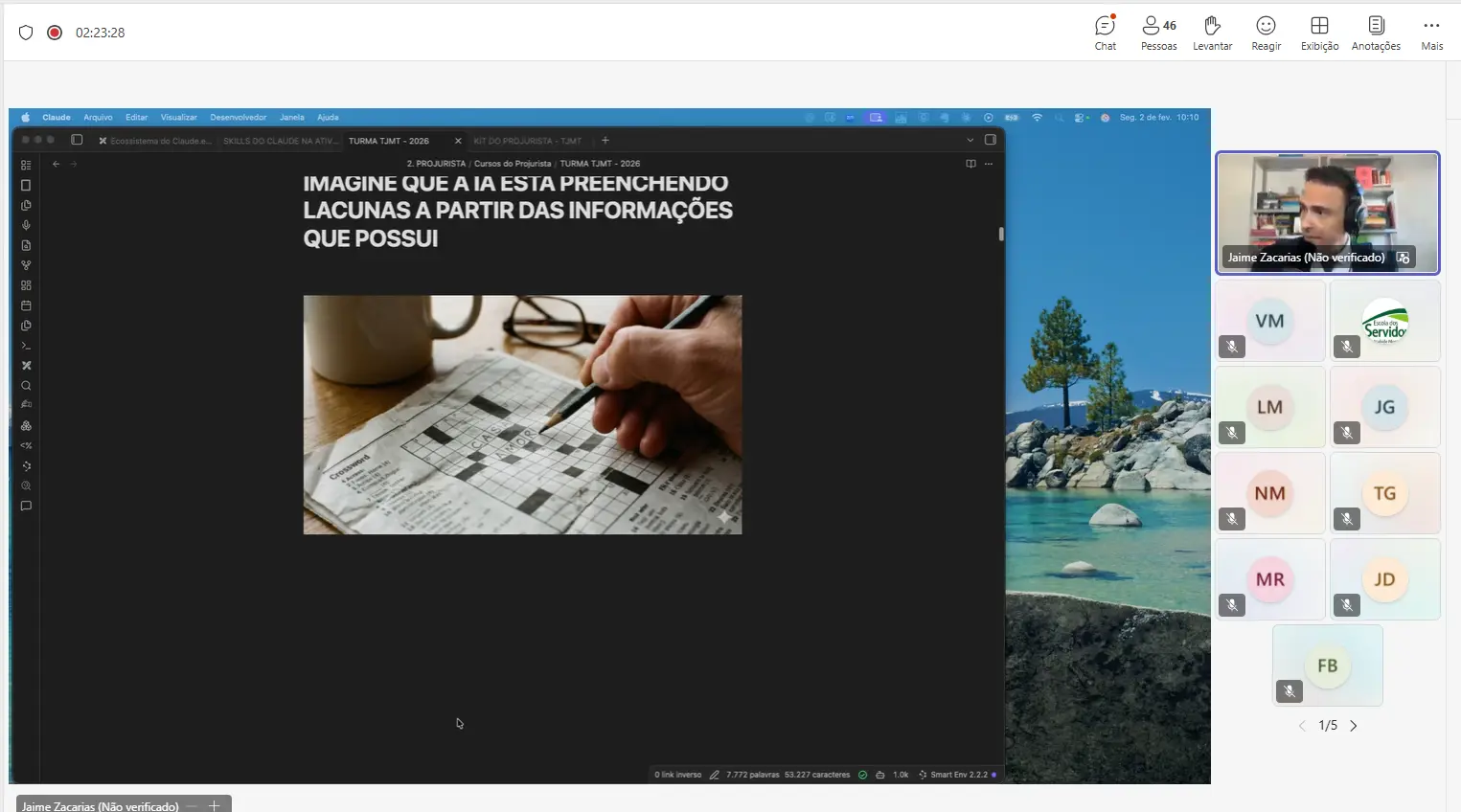 A primeira aula do curso “Uso do ChatGPT, Claude, Perplexity, Copilot e Gemini (Google AI Studio e Advanced) por profissionais das carreiras jurídicas” reuniu magistrados(as), servidores(as) e operadores do Direito que atuam em Mato Grosso em um encontro virtual voltado à compreensão qualificada do uso da inteligência artificial generativa no Judiciário. Com 15 horas-aula, divididas em quatro dias de imersão teórica e prática, o curso é ministrado pelo analista judiciário do Tribunal de Justiça de Pernambuco (TJPE), Jaime Zacarias.