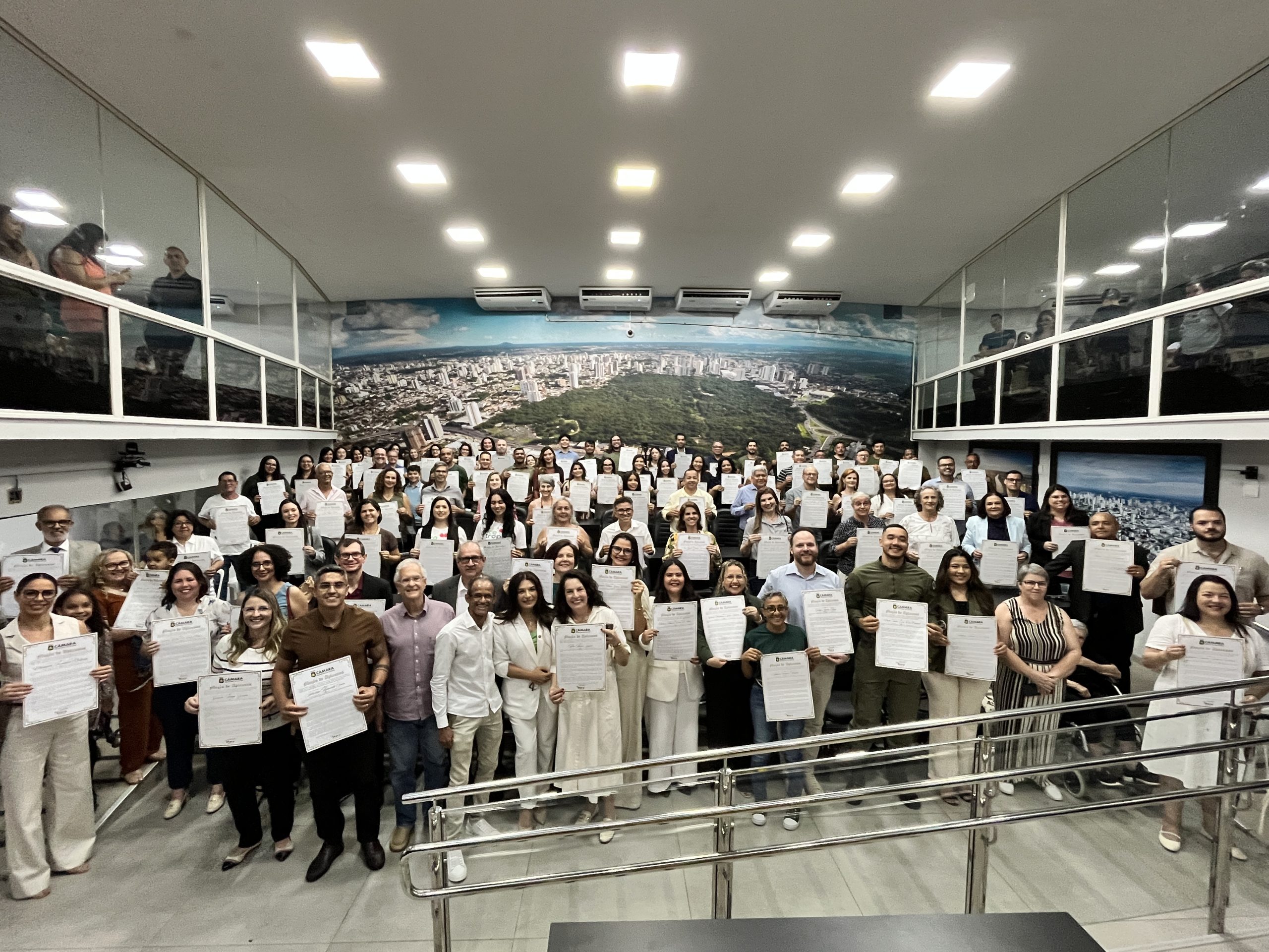 A Câmara Municipal de Cuiabá realizou, na noite desta segunda-feira (29), uma sessão especial para a entrega de Moções de Aplausos a mais de 100 pessoas e instituições que atuam na proteção ambiental. A iniciativa foi proposta pela vereadora Dra. Mara (Podemos) e reuniu autoridades, pesquisadores, ativistas, protetores da fauna e flora, além de representantes de entidades ligadas à sustentabilidade e educação ambiental.