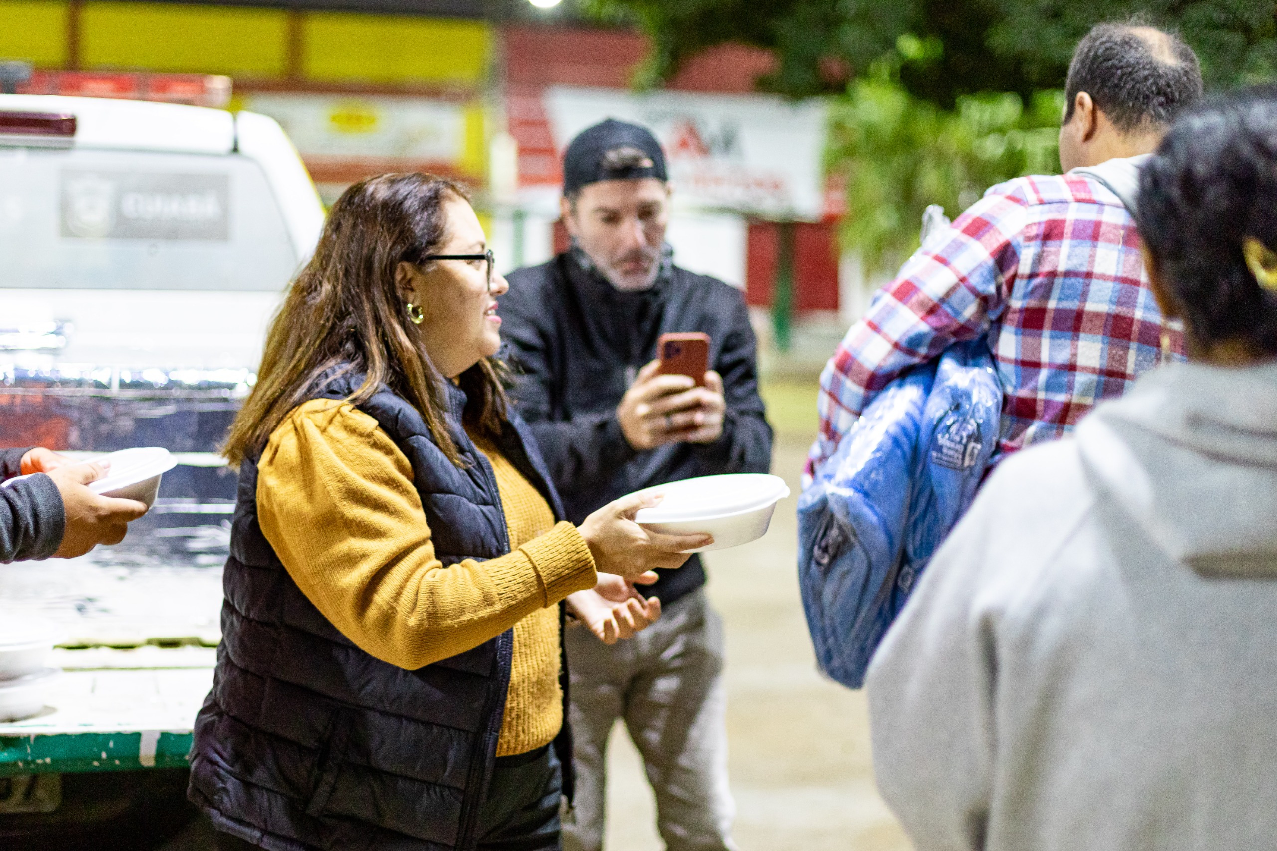 A noite de terça-feira (24) foi mais fria do que o habitual em Cuiabá. Termômetros marcando 14 graus, sensação térmica ainda menor. Mas em três pontos estratégicos da cidade — Porto, Beco do Candeeiro/Morro da Luz e Rodoviária (Eucalipto) — o que se espalhou foi o calor humano. Em uma ação emergencial da Secretaria Municipal de Assistência Social, Direitos Humanos e Inclusão, foram distribuídos cobertores e marmitas para pessoas em situação de rua, em uma força-tarefa que também ofereceu abrigo. A ação continua na noite dessa quarta-feira (25).