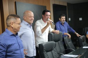 A reunião contou com a participação do presidente da Associação Mato-grossense dos Municípios (AMM), Leonardo Bortolin, do vice-governador Otaviano Pivetta, do presidente da Assembleia Legislativa, Eduardo Botelho, entre outras autoridades.