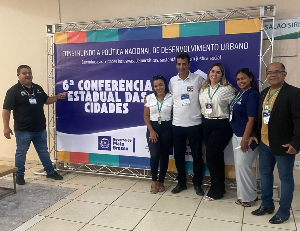 A foto que ilustra a matéria mostra parte dos representantes da Prefeitura de Cuiabá na 6ª Conferência Estadual das Cidades.