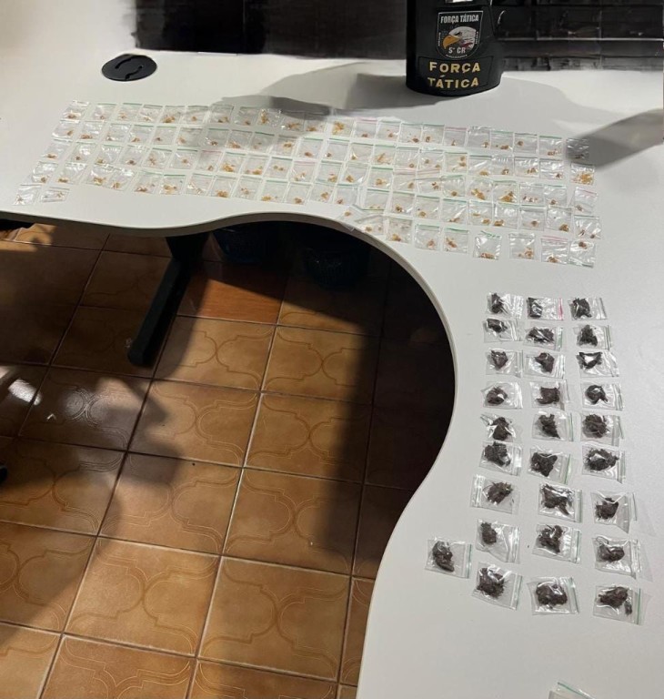 Policiais militares da Força Tática do 5º Comando Regional apreenderam 128 porções de entorpecentes, entre maconha e pasta base de cocaína, em uma residência no bairro União, no município de Barra do Garças (500 km de Cuiabá).