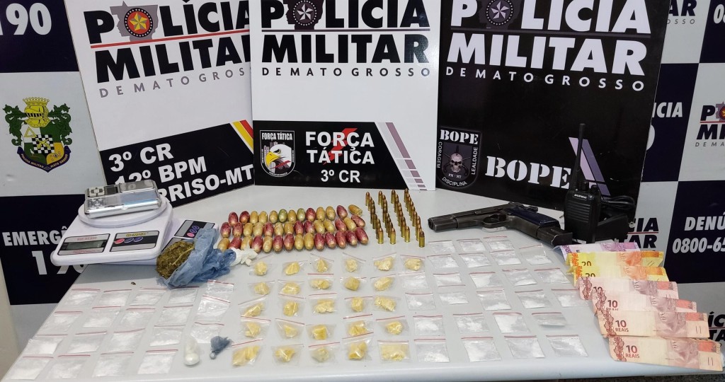 Policiais militares da Força Tática do 12º Batalhão de Sorriso apreenderam, na noite desta quinta-feira (14.11), uma pistola calibre 9 milímetros, 37 munições e 87 porções de pasta base de cocaína, além de um veículo Fiat Pálio, no município. Na ação, foram presos dois jovens, de 19 e 21 anos, por tráfico e associação criminosa.