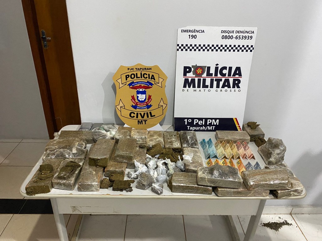 Trabalho conjunto da Polícia Militar e da Polícia Judiciária Civil resultou na prisão de dois homens e na apreensão de um adolescente por tráfico ilícito de drogas, na madrugada deste sábado (07.09), em Tapurah. Com a quadrilha, as forças policiais apreenderam 12 quilos de substância análoga a maconha.