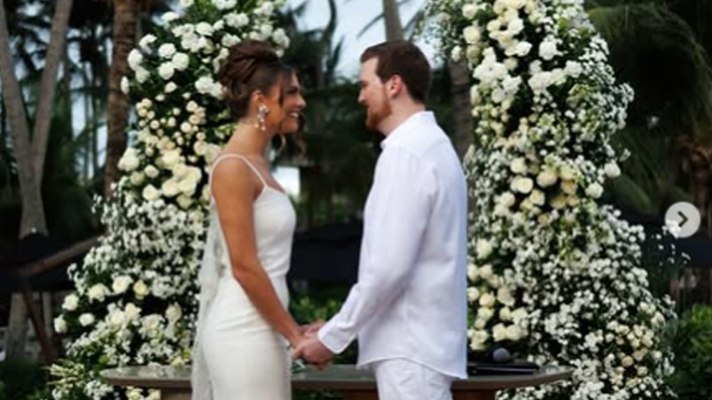 A primogênita do casal, Elaine Mickely e César Filho, elegeu para a cerimônia principal da festa de três dias, um vestido de noiva assinado pelo estilista Lucas Anderi, que levou três meses para ficar pronto. O modelo definido pela designer gráfica “como clássico e atemporal” foi combinado com joias da Gold Design Brazilian Jewelry.