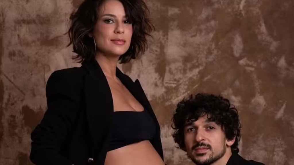 Andréia Horta deixou o barrigão da primeira gravidez à mostra em novo clique. A atriz compartilhou imagem no Instagram em que aparece de blazer, calça e top, exibindo o shape de nova mamãe. A artista espera uma menina, sua primeira filha com o namorado, o também ator Ravel Andrade, de 30 anos.