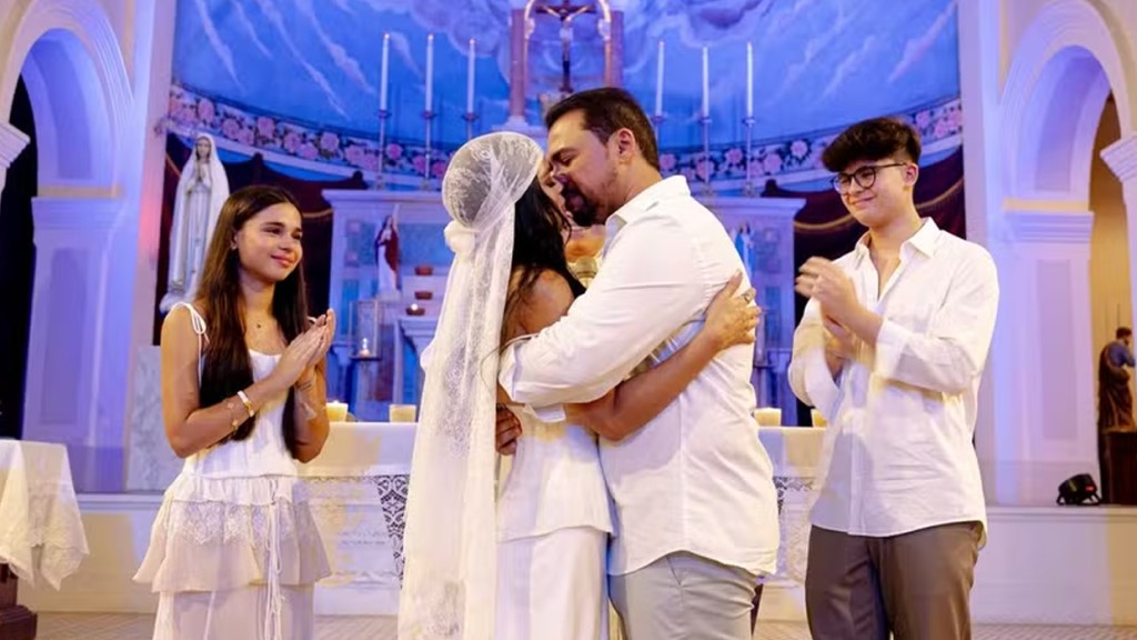 “Tudo fez sentido. Cada lágrima de alegria me deu ainda mais certeza de que o verdadeiro significado está em seguir ao lado Dele, guiados por Sua luz. Saí renovada, com uma fé ainda mais forte e uma gratidão que palavras jamais conseguirão expressar. E para fazer a gente chorar ainda mais, Enzo e Bella foram só para nos entregar as alianças. A sensibilidade deles, meu Deus, muito obrigada”, concluiu.